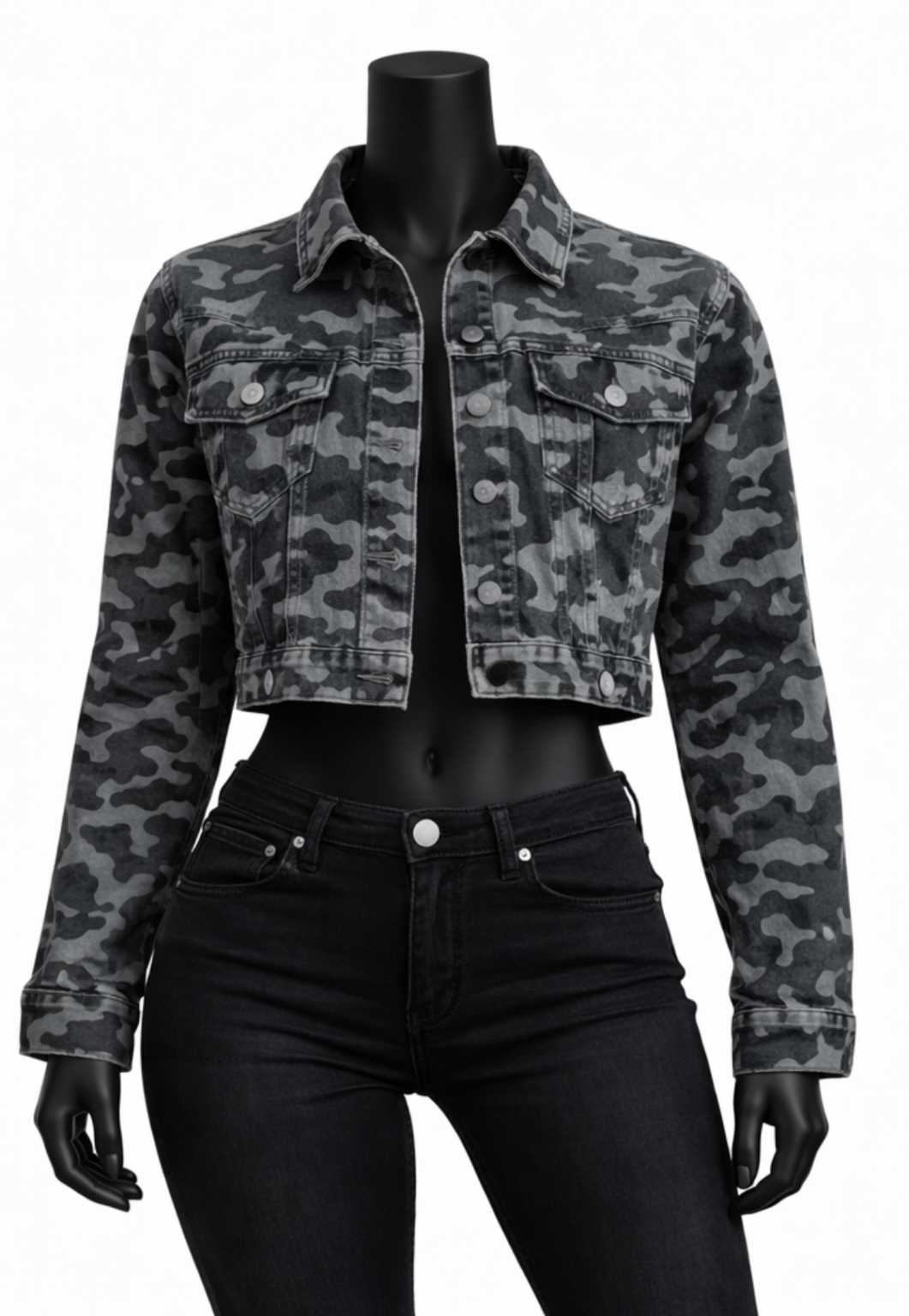 For a weekend market or city stroll, the camo denim jacket layered over a simple outfit transforms a basic look into a style moment.