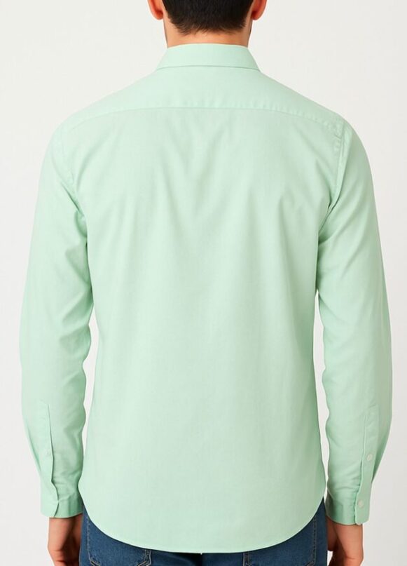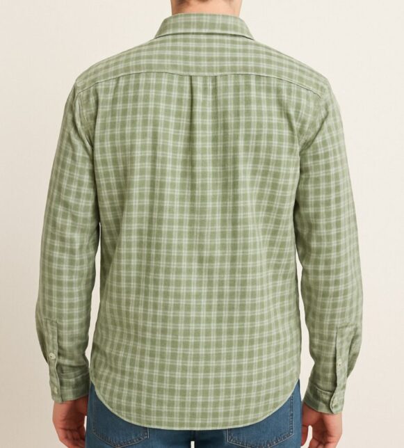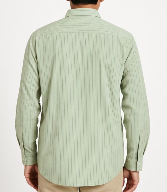 Sage Green Stripe Cotton Shirt, Men’s sage green cotton shirt with vertical stripes, full sleeves, chest pocket, and a smart button-down collar—ideal for casual and semi-formal occasions.