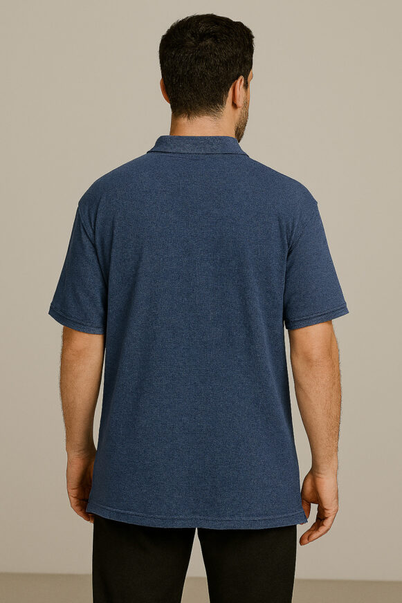 Navy Blue Polo T-Shirt with Logo Patch, Peter D' Lancaster navy blue polo shirt with a patch logo, soft fabric, and a relaxed fit – perfect for casual days.
