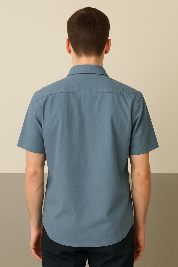 Men’s Solid Blue Short Sleeve Shirt, A comfortable and sharp slate blue short sleeve shirt with a chest pocket and clean tailoring – perfect for everyday wear.