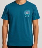 Teal Graphic T-Shirt, Teal blue men’s cotton T-shirt with playful chest graphic and bold “Catch the Wave” back print. Regular fit, short sleeves, perfect for casual wear.