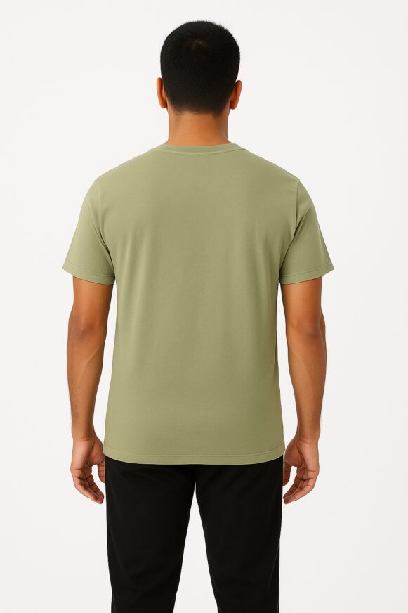 Olive Green Cotton Crew Neck T-Shirt, Men’s olive green cotton crew neck T-shirt with short sleeves, soft breathable fabric, and classic fit for versatile everyday styling.