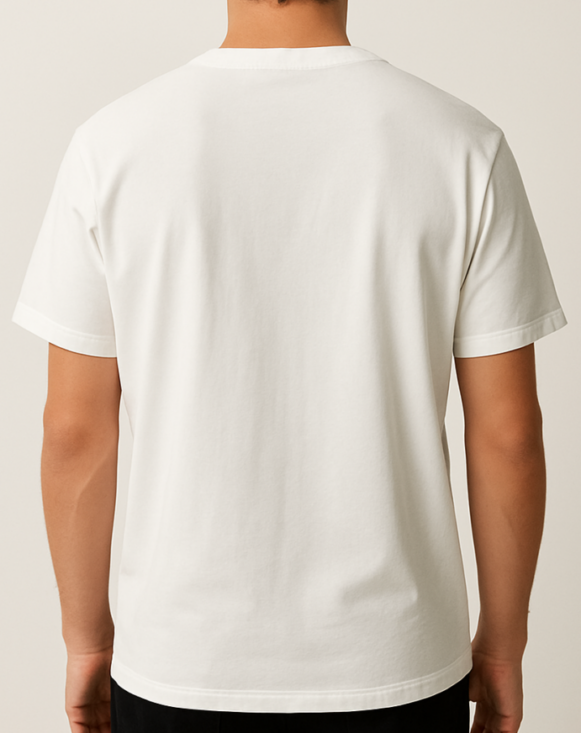White Round Neck T-Shirt, Classic men’s white round-neck T-shirt made from breathable cotton. Relaxed fit with 11" shoulder, 21" sleeves, 41.5" chest, and 48.5" waist for everyday comfort.11