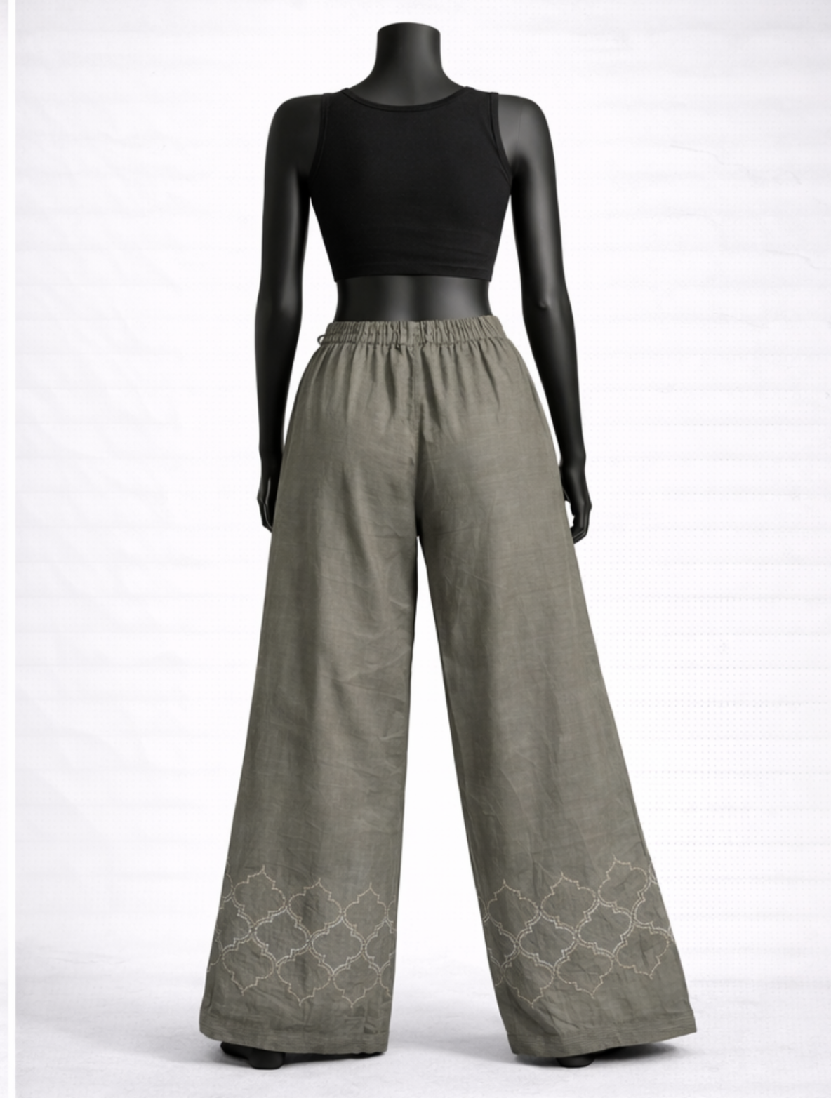 Olive Green Embroidered Palazzos with Elastic Waist, are designed for relaxed ethnic comfort and everyday wear.