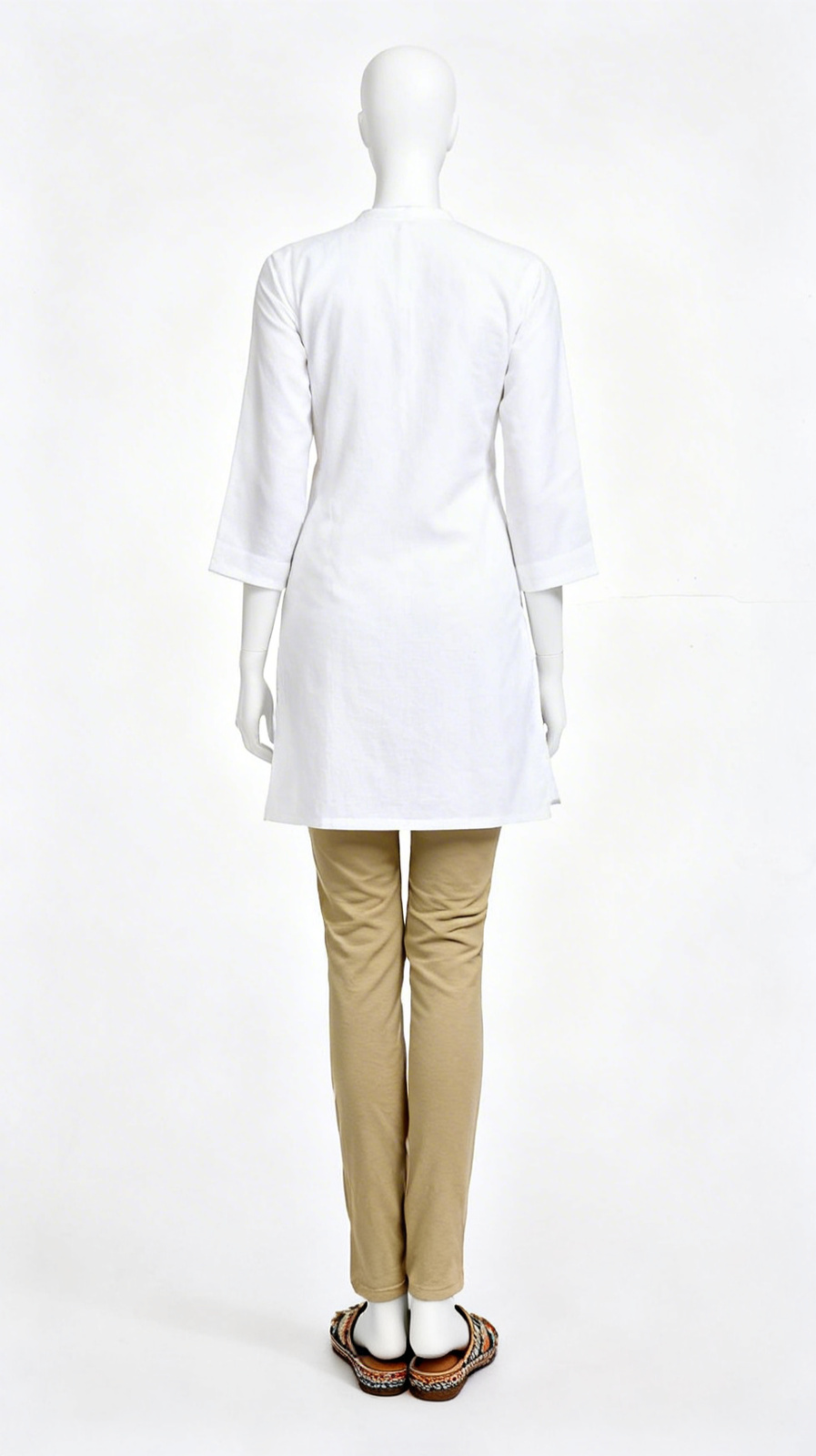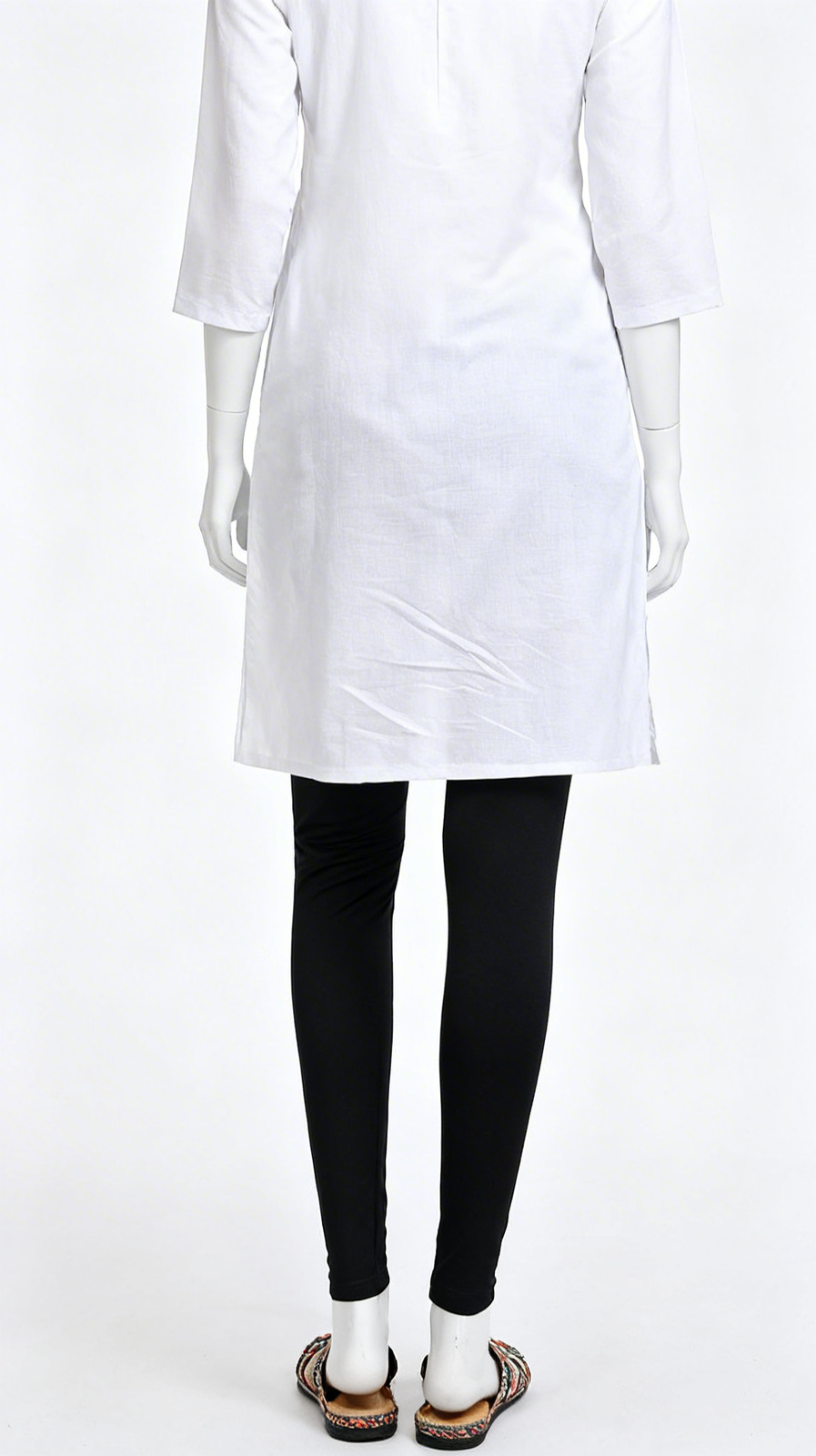 Soft cream leggings with ankle button detailing, elastic waistband and a comfortable stretch fit. Perfect for daily wear and ethnic pairing.
