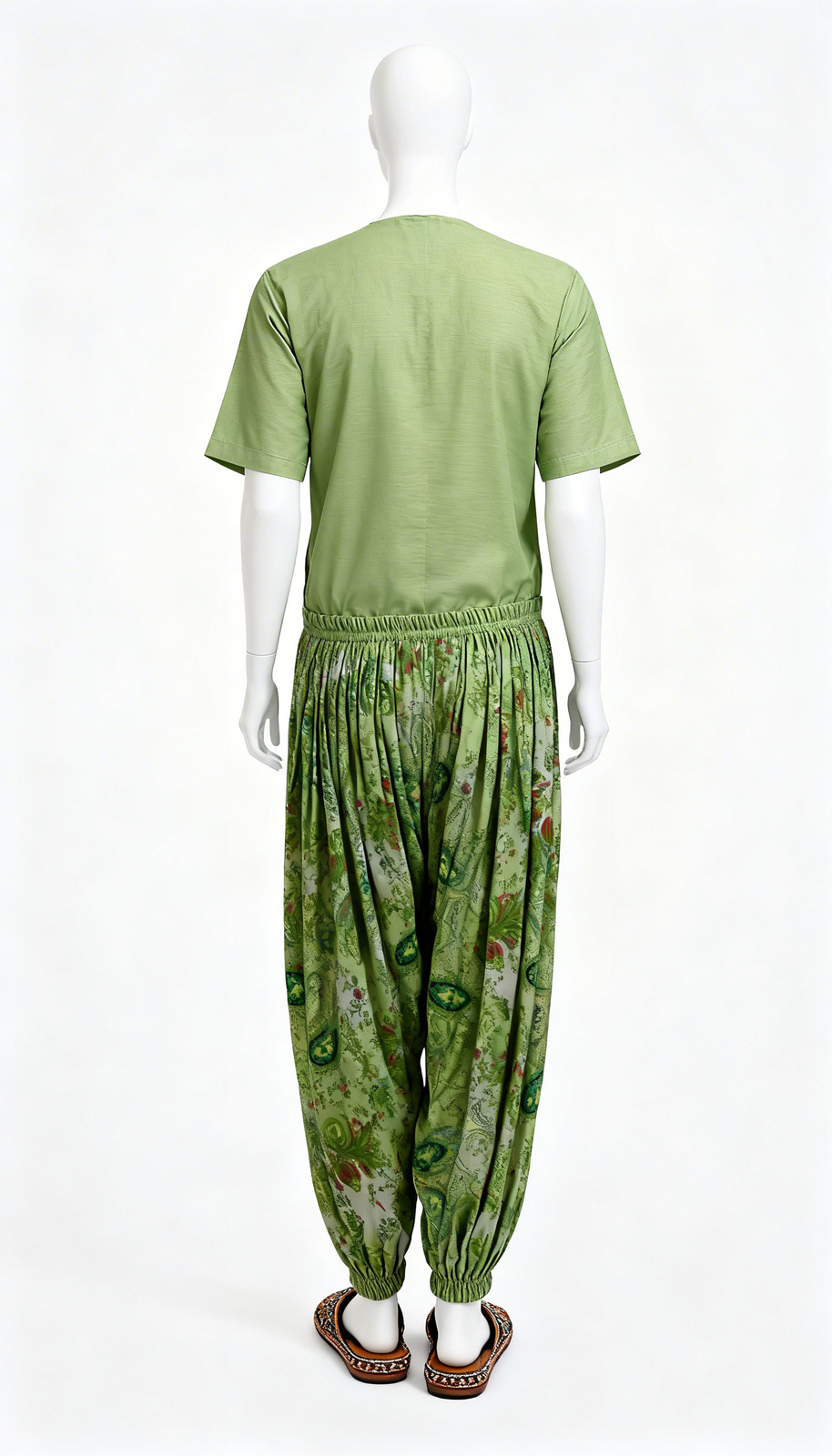 Green floral printed Patiala bottom with soft breathable fabric, wide pleats, elastic waist, perfect for ethnic & casual styling.