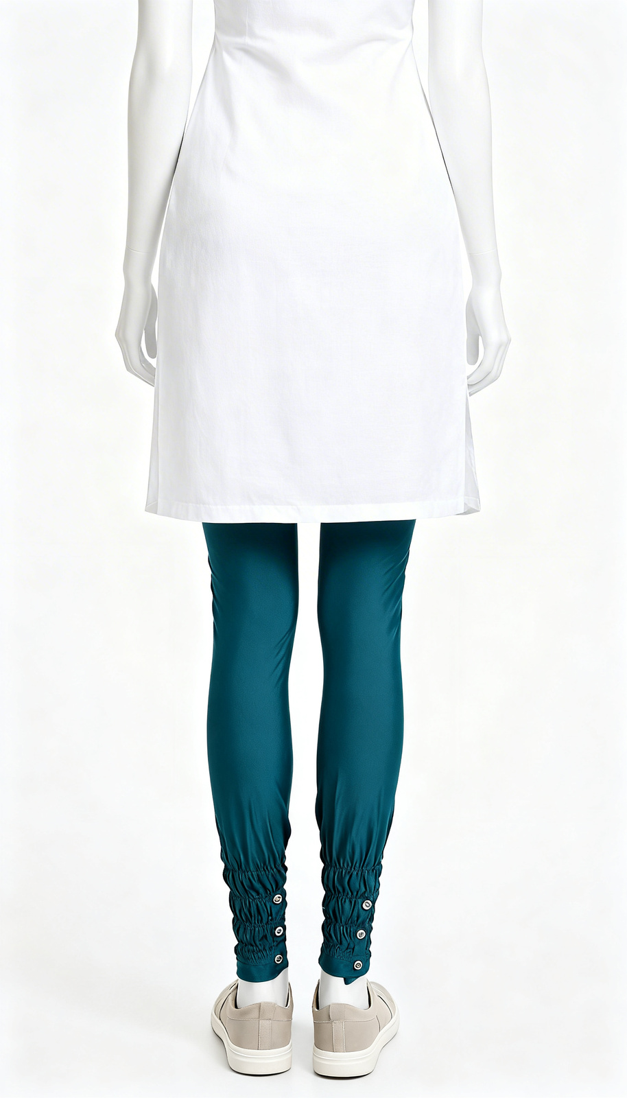 Teal Solid Slim Leggings Teal Solid Slim Leggings feature a bodycon fit with solid pattern and ankle length silhouette.
