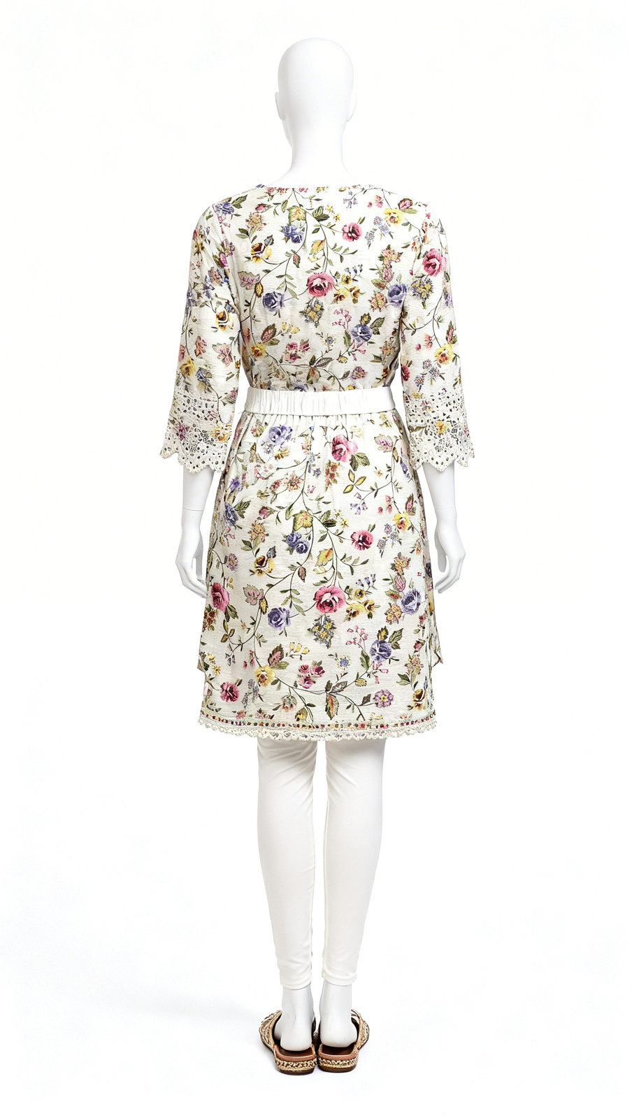 White Floral Kurti features soft printed fabric with three fourth sleeves suitable for formal office wear.