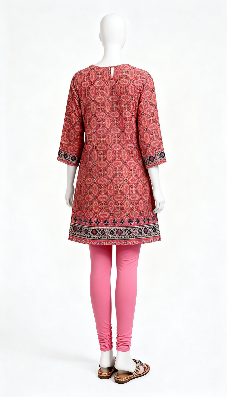 Red Geometric Kurti features printed cotton fabric with three fourth sleeves crafted for formal office wear.