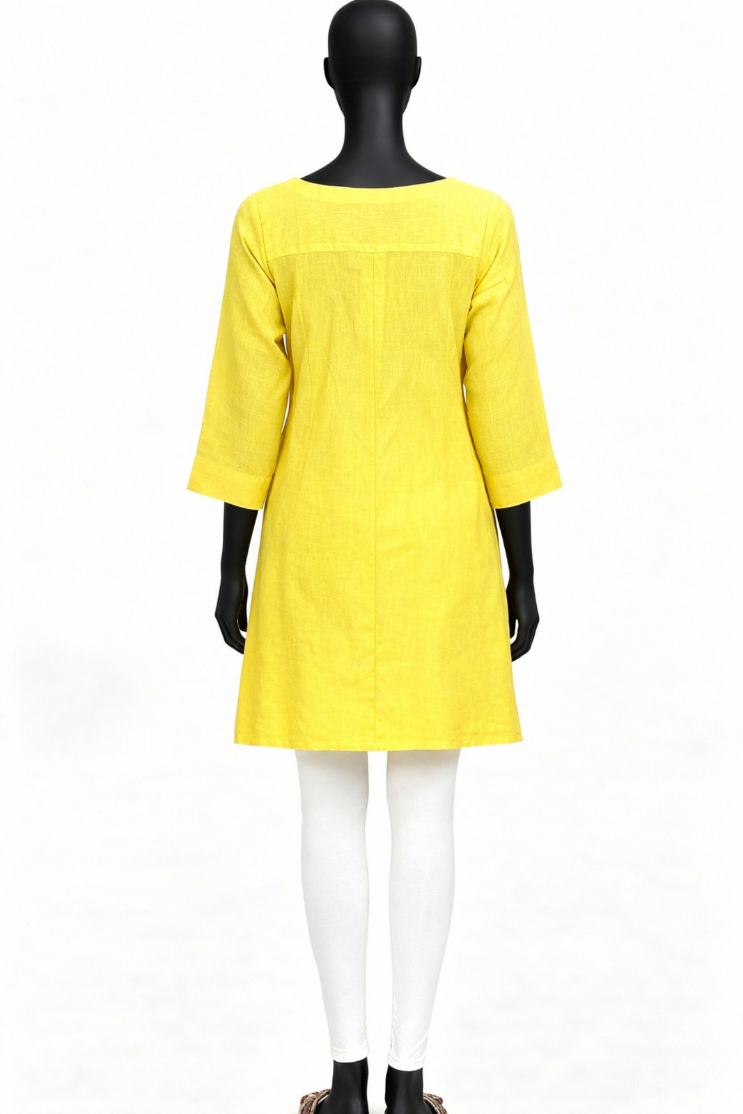 Yellow Solid Kurti features clean solid cotton fabric with three fourth sleeves designed for formal office wear.