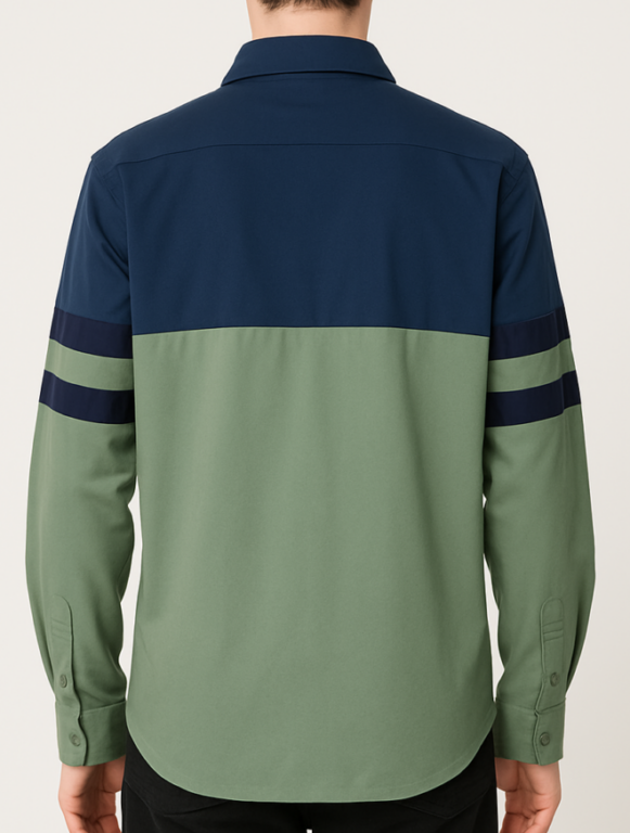 Blue & Navy Colour block Polo T-Shirt, Men’s dual-tone navy & royal blue polo t-shirt with short sleeves, cotton-blend fabric, and a smart casual design.