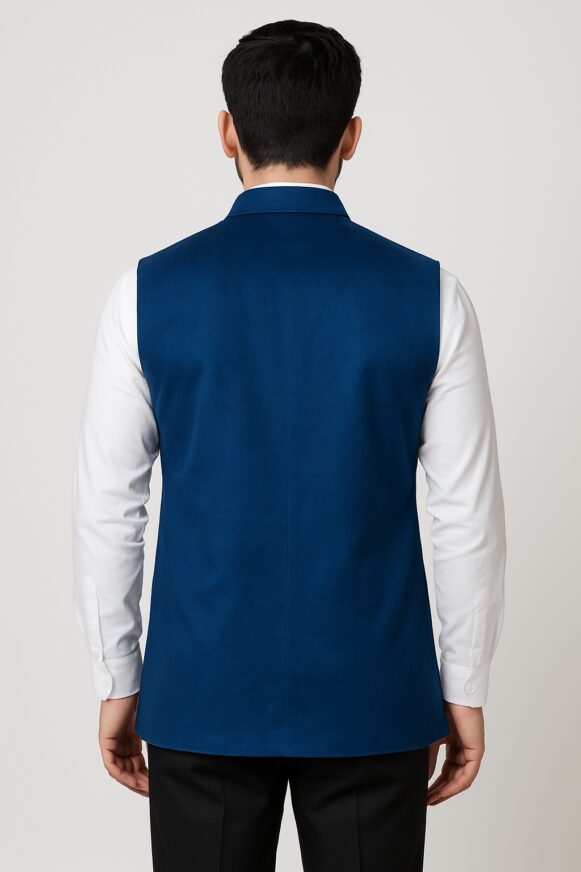 Rent for ₹60.00/day (Buy for ₹299.00)Blue Jodhpuri Nehru Jacket, Royal blue Nehru jacket with embroidered crest and twin welt pockets. Elevate your formal wardrobe with this Blue Jodhpuri Nehru Jacket, a refined piece that captures the elegance of traditional Indian tailoring with a modern royal finish. Rendered in a rich royal blue shade, this jacket commands attention while maintaining a dignified, polished presence. The vibrant color symbolizes confidence and sophistication, making it an ideal choice for festive celebrations, weddings, and ceremonial occasions.