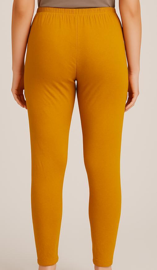 Mustard Cotton Leggings, Soft and stretchable mustard yellow cotton leggings with a snug fit and elastic waistband – ideal for daily wear or layering.