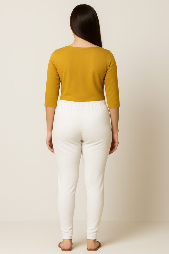 Off-White Stretch Cotton Leggings For Women, Soft and stretchy off-white cotton-blend leggings with a high-rise elastic waistband and tapered fit for everyday comfort.