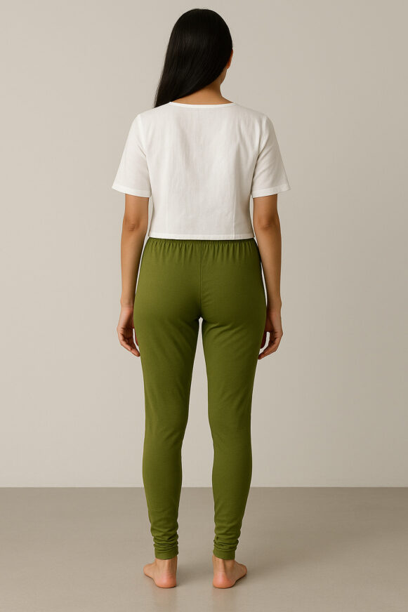 Olive Green Churidar Leggings, Comfortable olive green churidar leggings with stretch fit and gathered ankles, perfect for daily or ethnic wear.