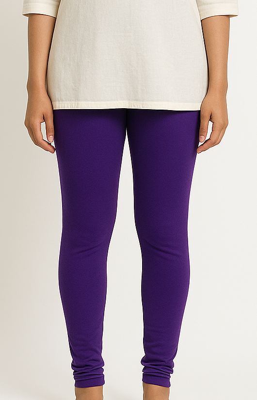 Purple Cotton Leggings, Soft, stretchable full-length purple leggings made from cotton lycra with an elastic waistband for everyday comfort.