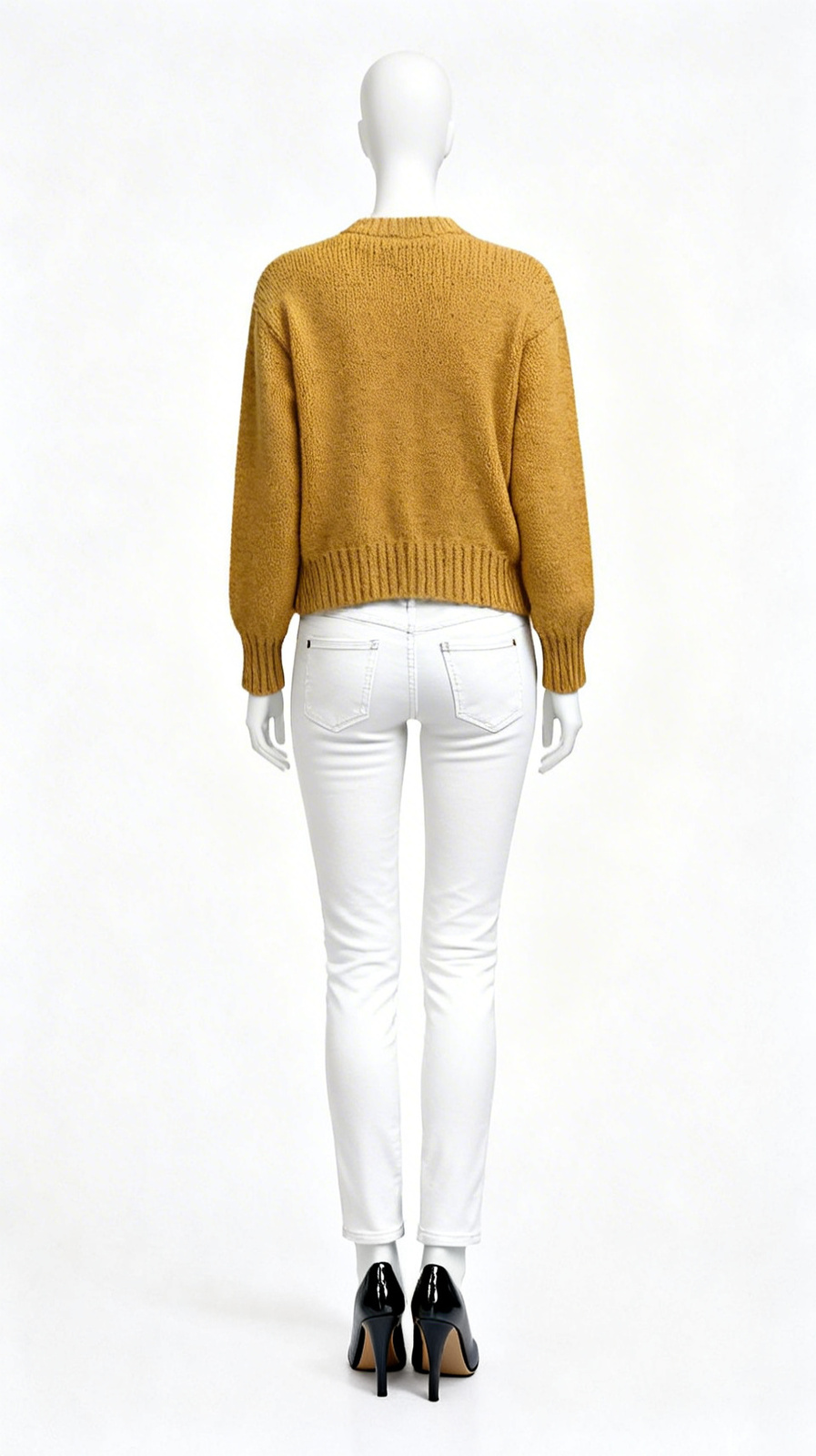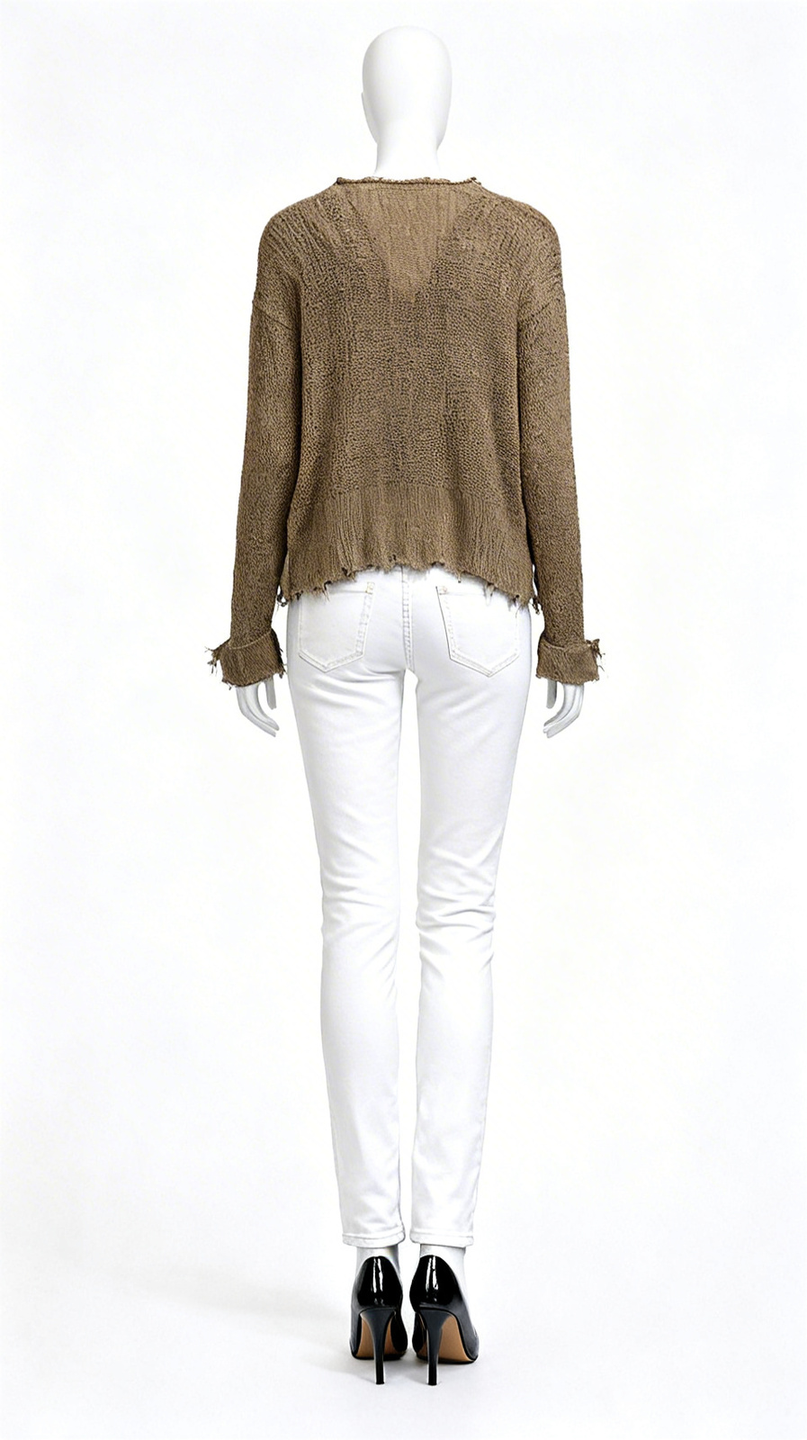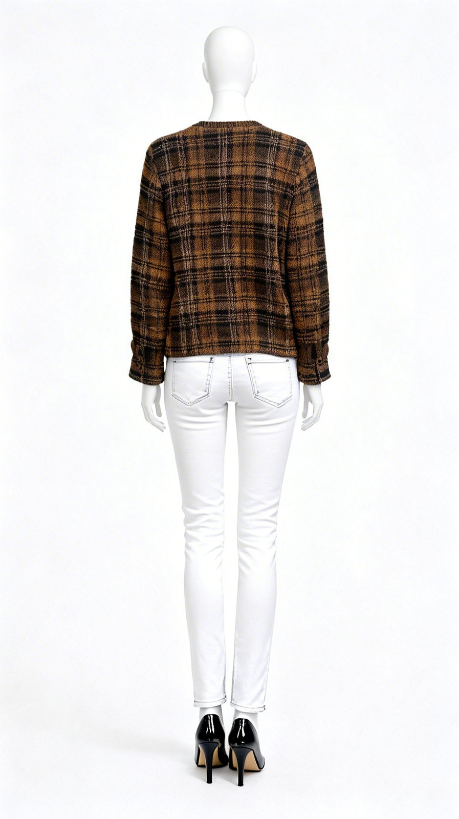 Women’s Brown Solid Button-Down Winter Cardigan, A classic brown solid button-down cardigan crafted from soft acrylic-blend knit, featuring a round neck, ribbed hem, and full sleeves—perfect for cozy winter layering.