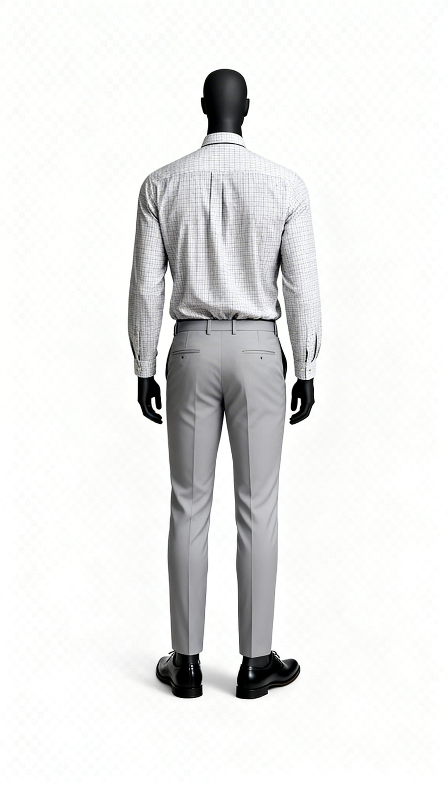 Light Grey Pinstripe Shirt, Men’s light grey shirt with vertical pinstripes, point collar, front pocket, and button cuffs in a breathable cotton fabric.