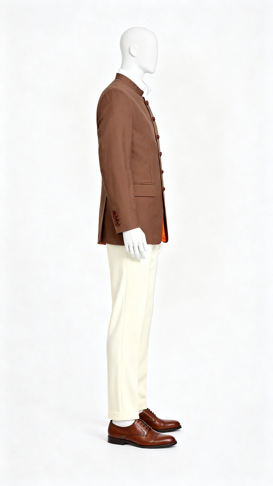 Rent for ₹200.00/day (Buy for ₹999.00)Rust Bandhgala Statement Blazer is designed for formal settings with a distinctive solid tone and traditional closed neckline. The tailored structure supports confident presentation. Full sleeves and clean construction ensure balance. This blazer suits individuals seeking controlled expression through color while maintaining formal discipline and reliable wear across ceremonial and professional occasions.
