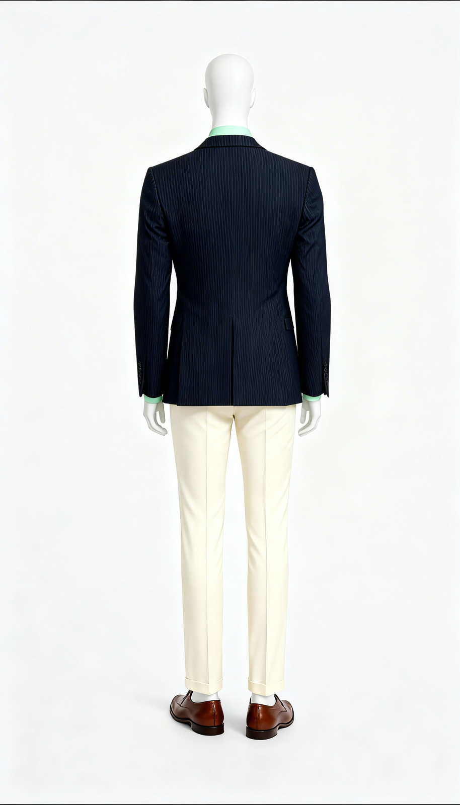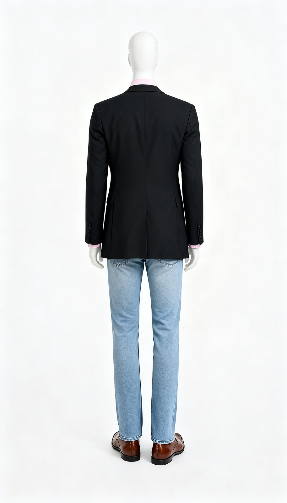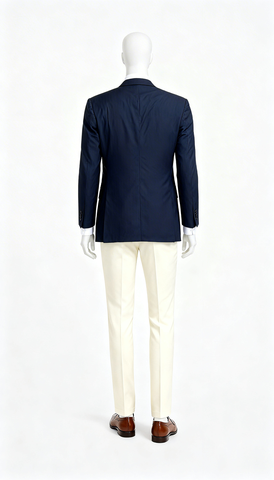 The ultimate foundation for professional and smart-casual attire, this classic navy blue single-breasted blazer is a rental must-have. Crafted from a structured, comfortable fabric, it maintains a sharp silhouette and excellent drape