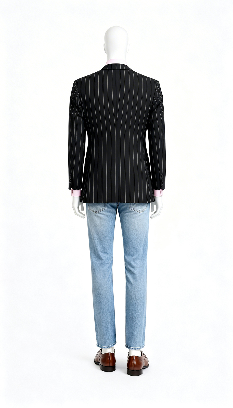 Command authority with this classic pinstripe single-breasted blazer. Rendered in a sophisticated Dark Charcoal Grey or Black, the fine, vertical stripes instantly elevate the jacket, making it a staple for business professional attire and power dressing.