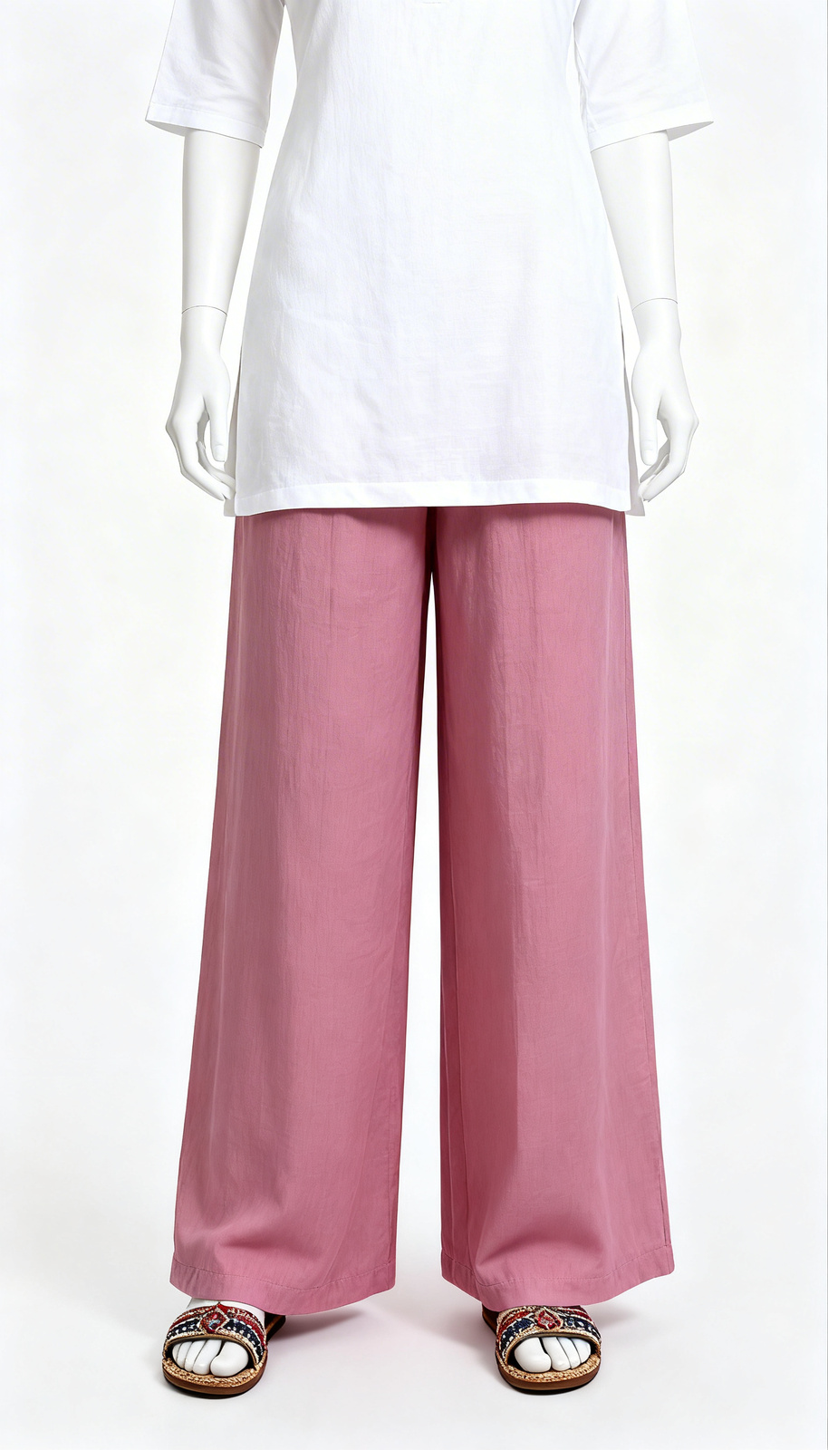 Soft mauve palazzo with wide-leg comfort, breathable fabric, and drawstring waist—ideal for ethnic, casual, and lounge styling.