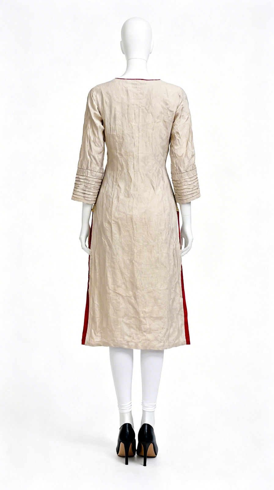 Beige Embroidered Formal Shirt, A beige short-sleeve formal shirt with white embroidery, front pocket, and back detailing. Ideal for festive and smart-casual wear.