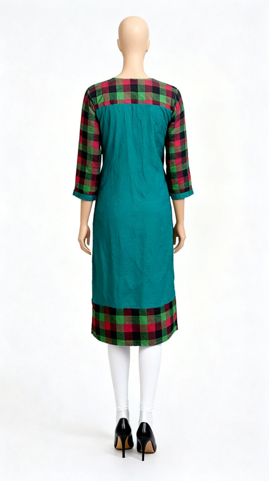 Green Churidar Leggings for Girls, Teal green churidar leggings for girls aged 5–6 years, made from soft stretch cotton with an elastic waistband and ruched ankle fit.