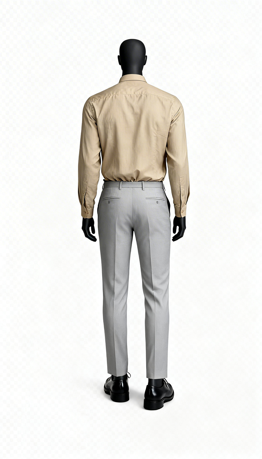 Beige Military Stripe Shirt, A stylish men’s cotton shirt featuring earthy vertical stripes, chest flap pockets, epaulettes, and a color-block back yoke. Perfect for versatile, statement styling.