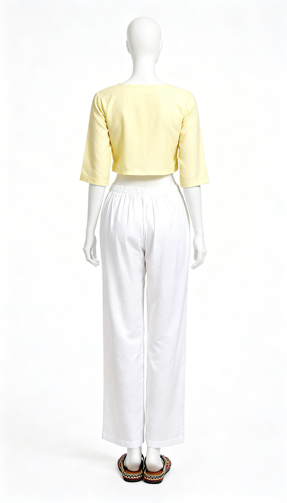 White Cotton Lounge Pants, Men’s white cotton lounge pants with elastic drawstring waist and back welt pockets, offering breathable comfort and a relaxed fit.