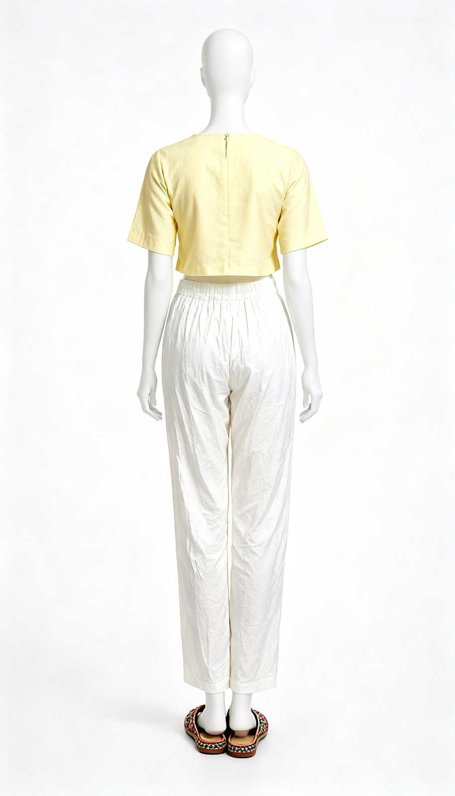 White Cotton Co-ord Set for Men, Minimal white co-ord set featuring a buttoned Henley shirt and relaxed trousers crafted from soft cotton-linen blend fabric for all-day comfort.