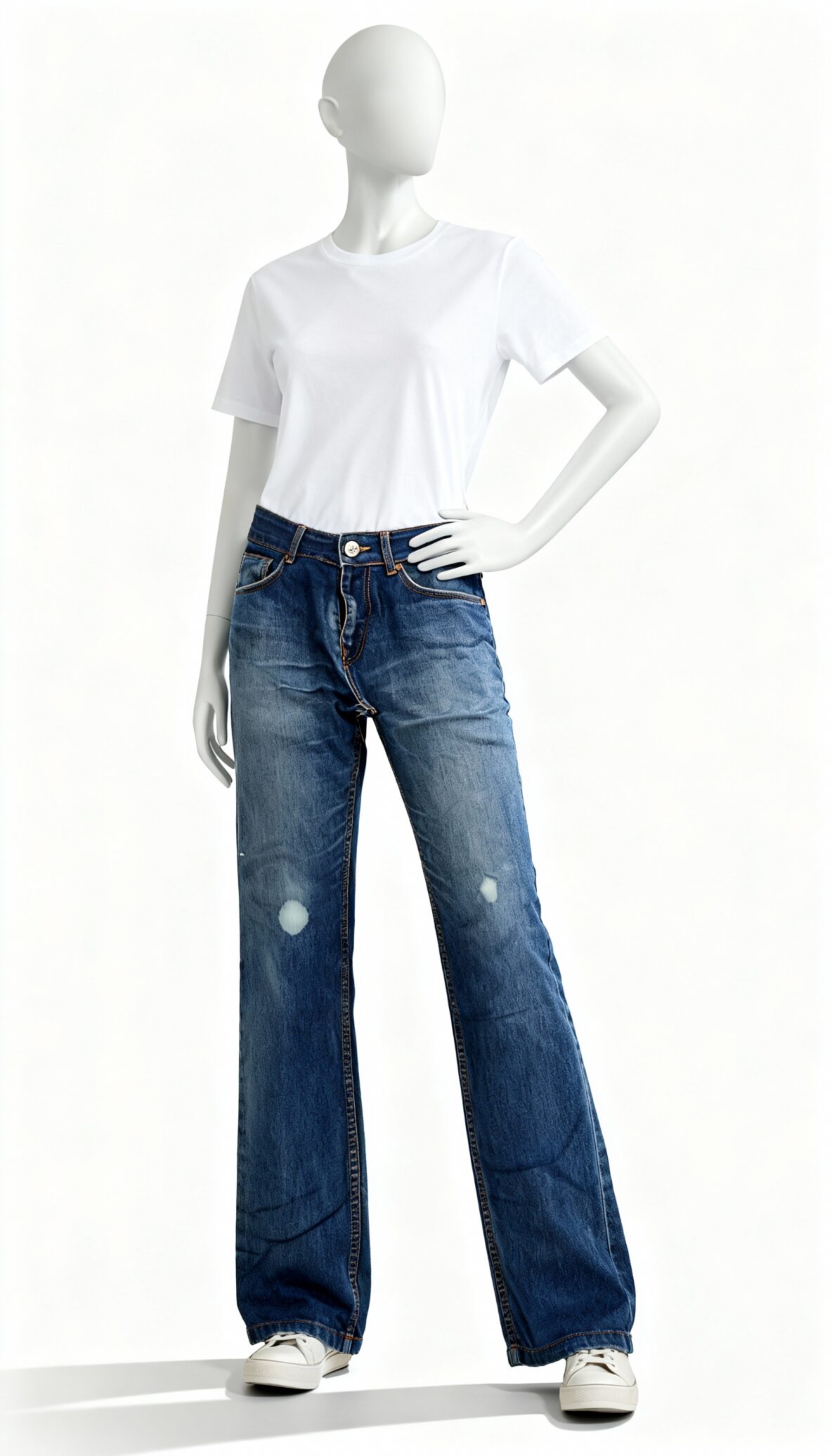 Women’s Blue Faded Regular Fit Denim Jeans, Blue regular-fit faded denim jeans with a classic straight-leg design.