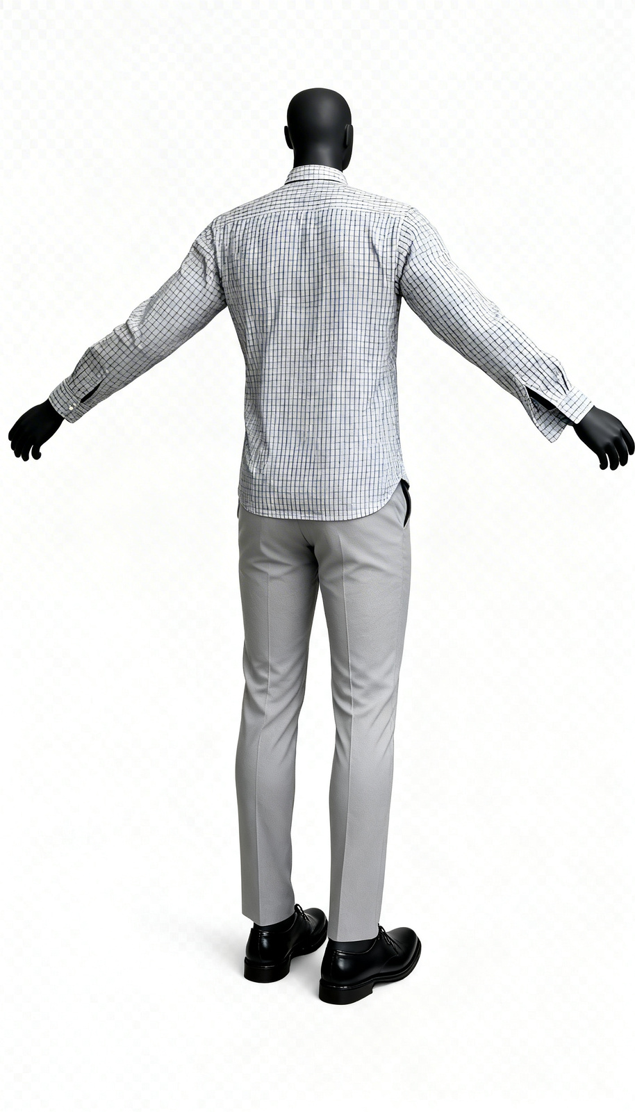 Light Grey Pinstripe Shirt, Men’s light grey shirt with vertical pinstripes, point collar, front pocket, and button cuffs in a breathable cotton fabric.