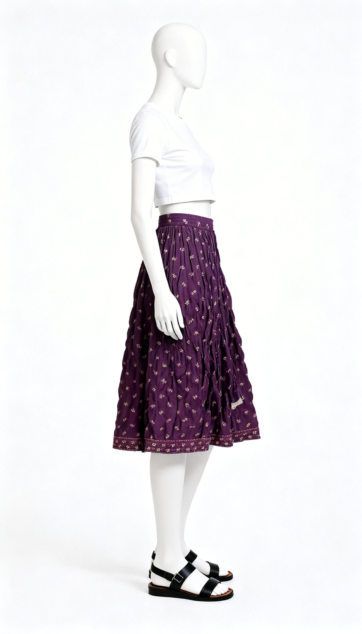 Rent for ₹60.00/day (Buy for ₹299.00)Effortless Style, Everyday ComfortThis purple-blue cotton flared skirt combines breathable comfort with a graceful silhouette, making it ideal for everyday wear, travel, and refined fusion styling.Available as part of the CostumePeti circular fashion ecosystem — rent, store, or resell.