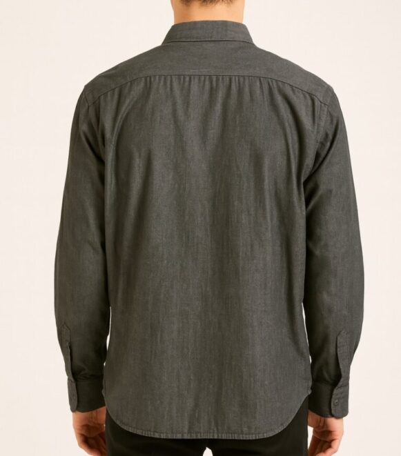 Men’s Grey Solid Full Sleeves Shirt, Men’s charcoal grey cotton twill shirt with chest pocket, button closure, and full sleeves—ideal for both formal and casual wear.