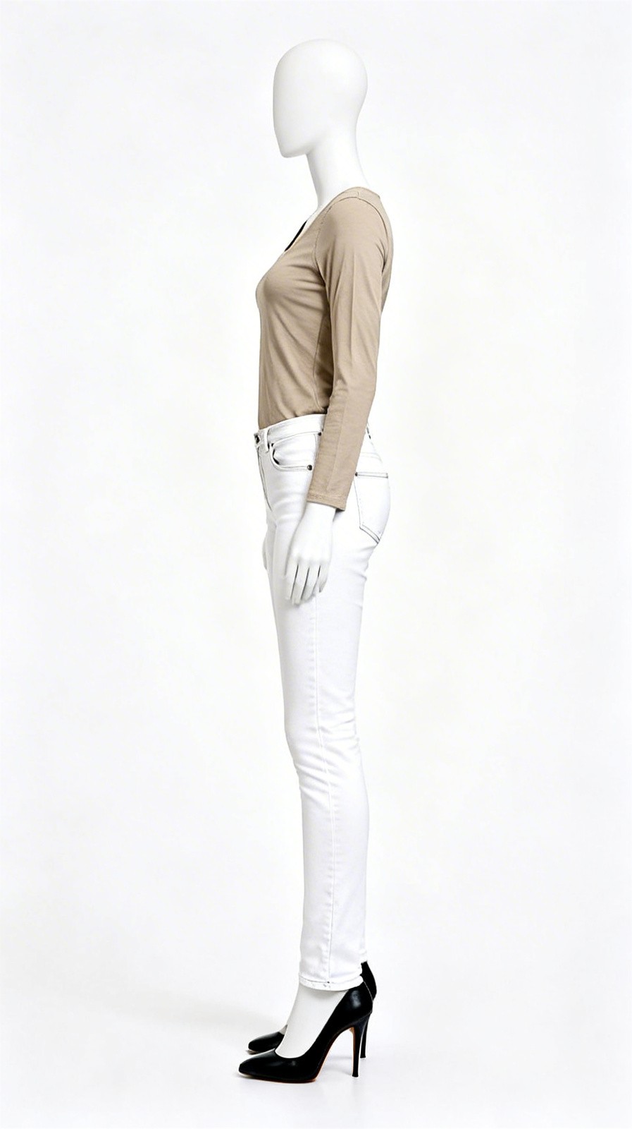 Solid beige long sleeve fitted top