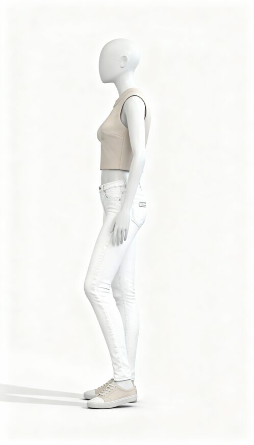 This sleeveless top features a smooth solid beige finish and a tailored appearance that pairs well with both casual and semi-formal outfits. The simple neckline and structured fit create a refined silhouette.