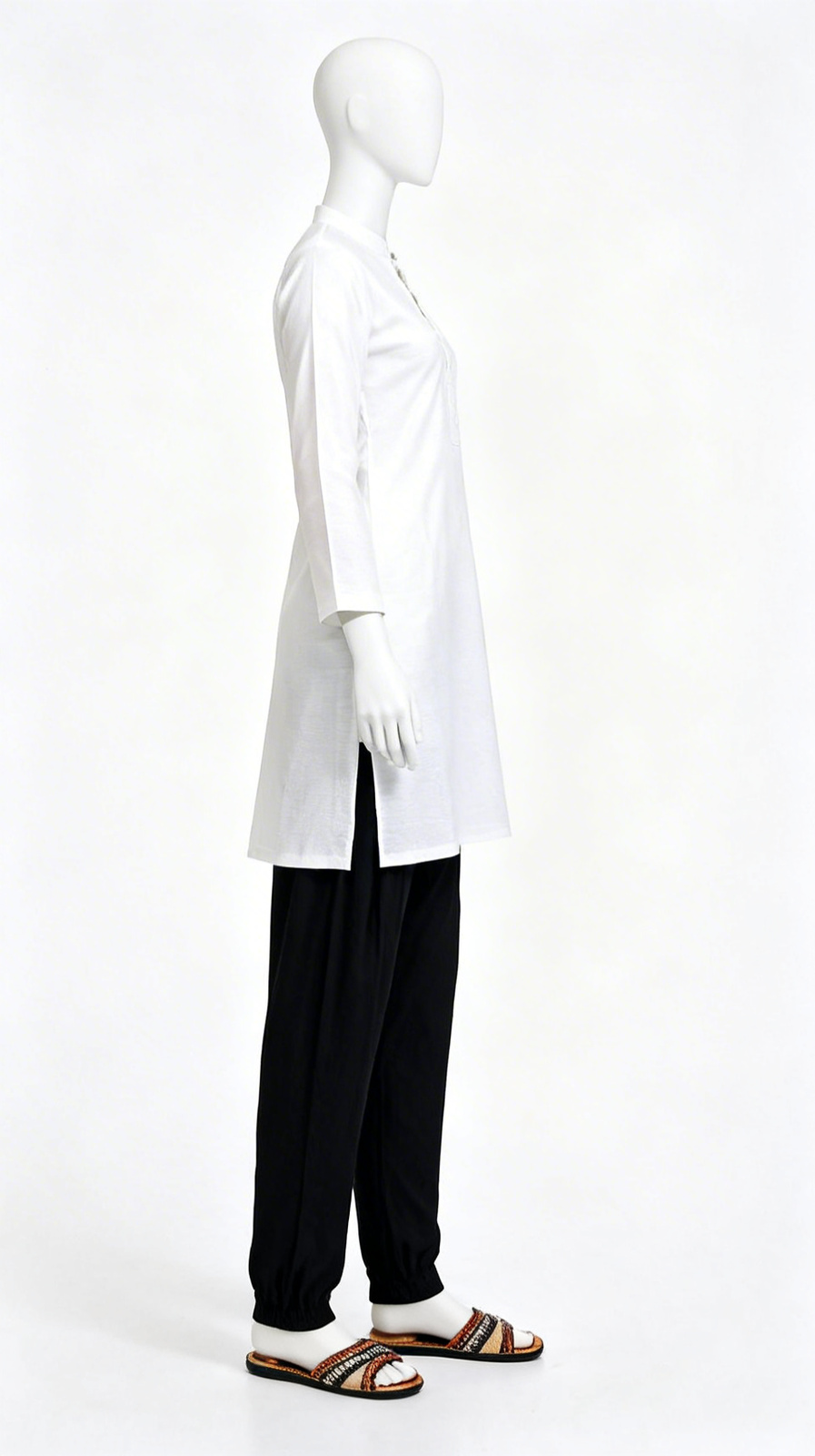 Soft and breathable black cotton leggings designed with a stretch-fit style and elastic waist for a secure feel. Perfect for everyday comfort, workouts, lounging, or pairing under long tops and kurtas.