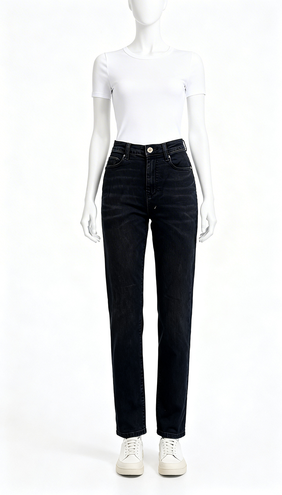 These black washed skinny jeans provide a streamlined profile with flexible movement for everyday comfort. The soft denim texture enhances wearability while maintaining a contemporary appearance.