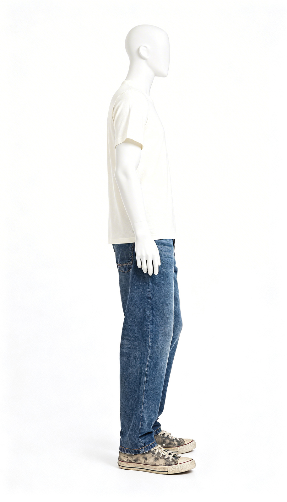 Comfortable blue denim jeans with a roomy thigh, balanced waist, and smooth straight-leg fit for everyday casual wear.
