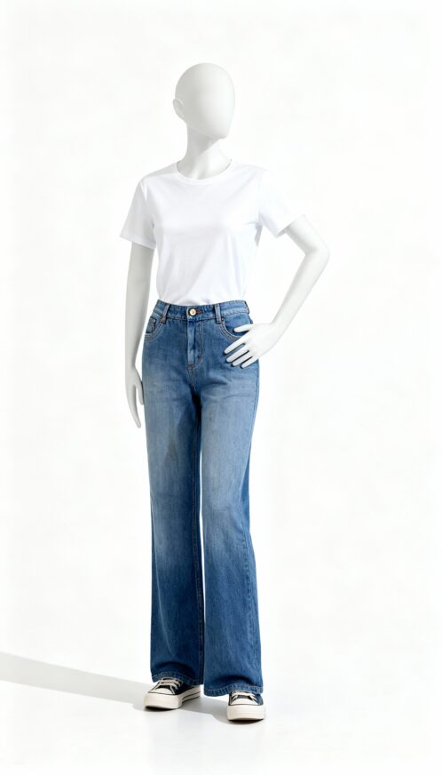 Blue washed denim jeans with slim tapered fit for everyday casual wear