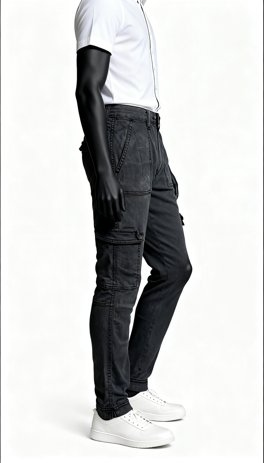 Charcoal Cargo Pants crafted for casual utility wear with functional pocket detailing.
