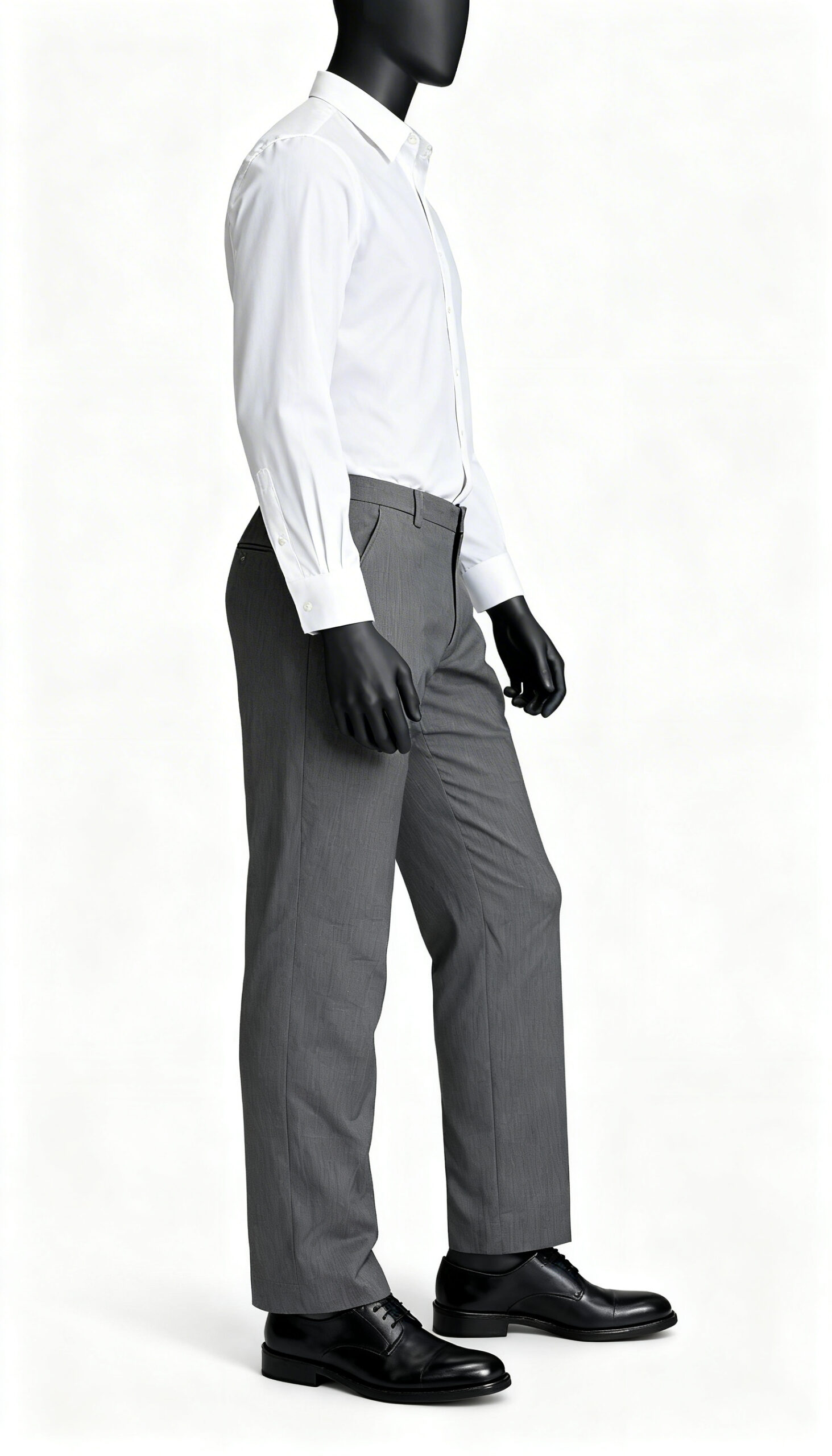 Charcoal grey classic trousers designed for comfortable and sharp formal office dressing.