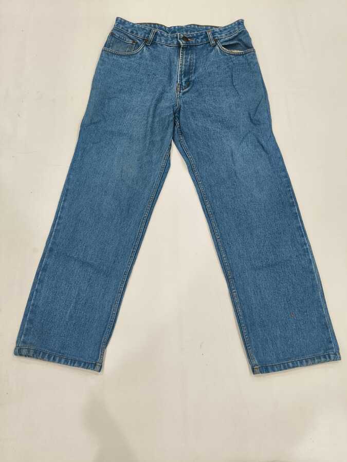 Straight-fit blue jeans made from durable denim with a clean classic wash, offering everyday comfort and timeless casual style.