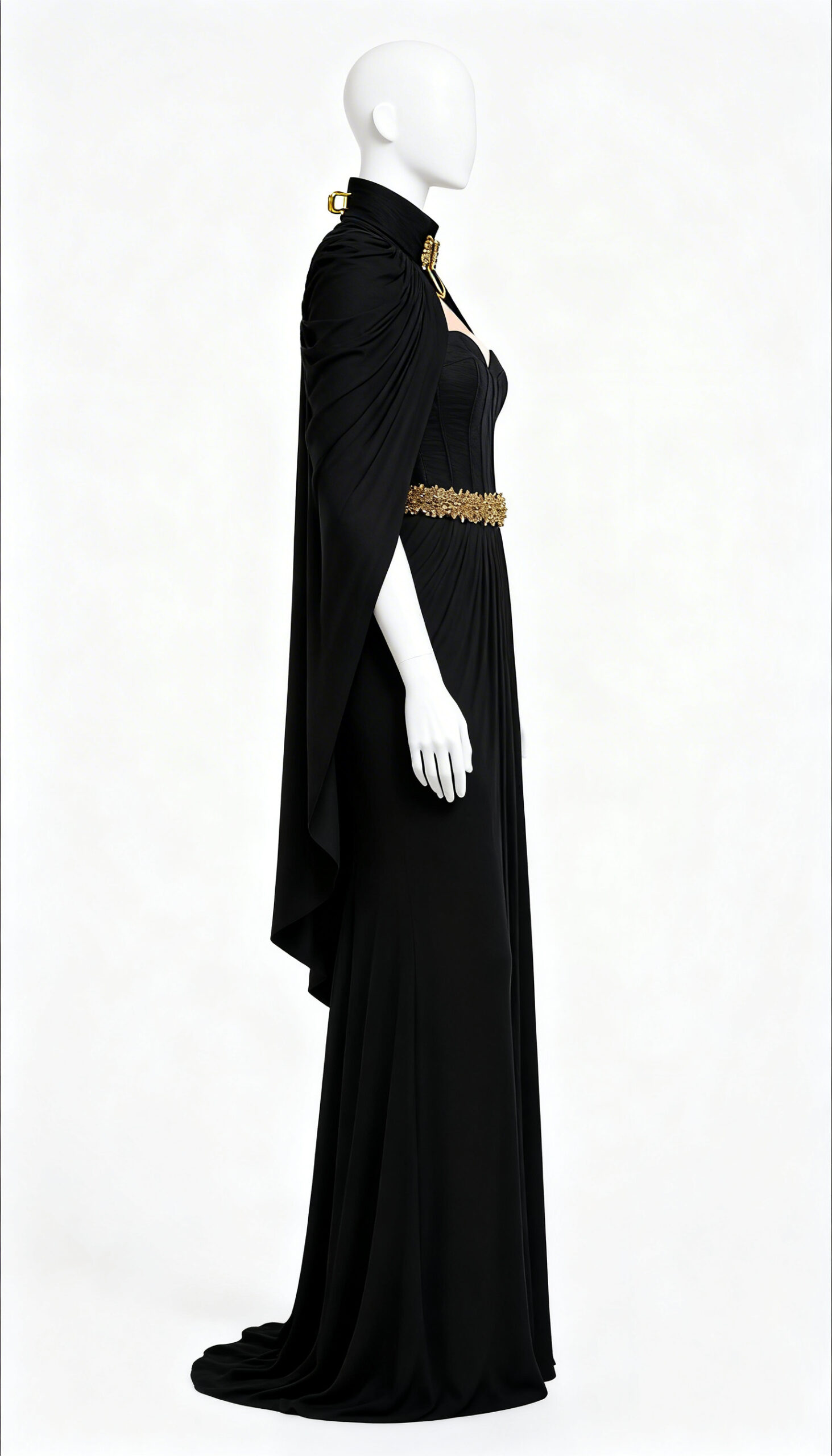 Corset Cape Western Dress, Chocolate Draped Evening Maxi Gown stylish party gown with fluid drape