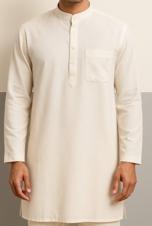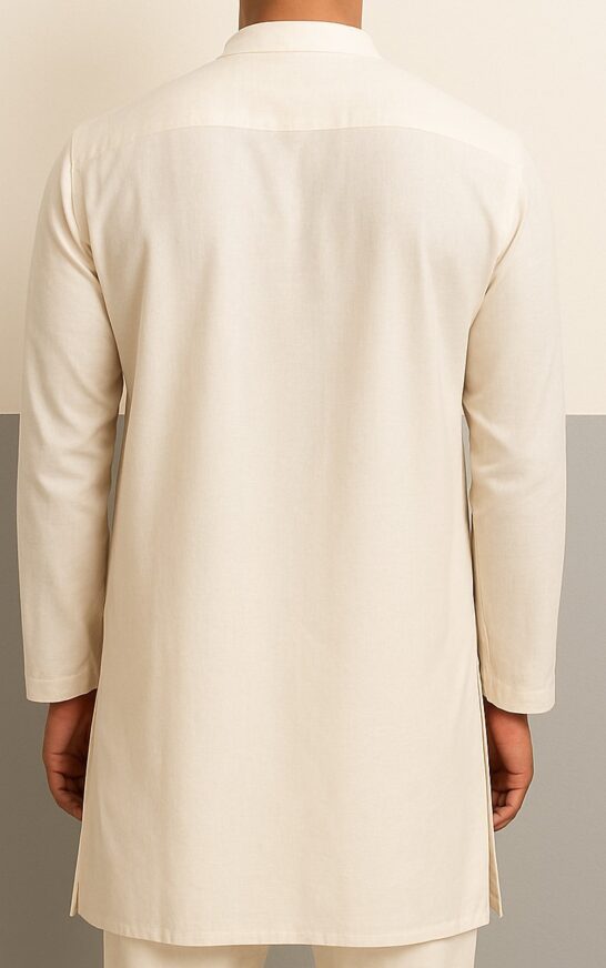 Cream Cotton Blend Kurta for Men, This elegant cream kurta is crafted from a premium cotton-blend fabric that offers both breathability and structure. Designed for comfort and style, it features a clean, minimal look with a mandarin collar, a four-button half placket, and a functional chest pocket. The kurta comes with full-length sleeves and a straight-cut hem with side slits for ease of movement. Ideal for both casual and traditional wear, this piece ensures timeless sophistication.