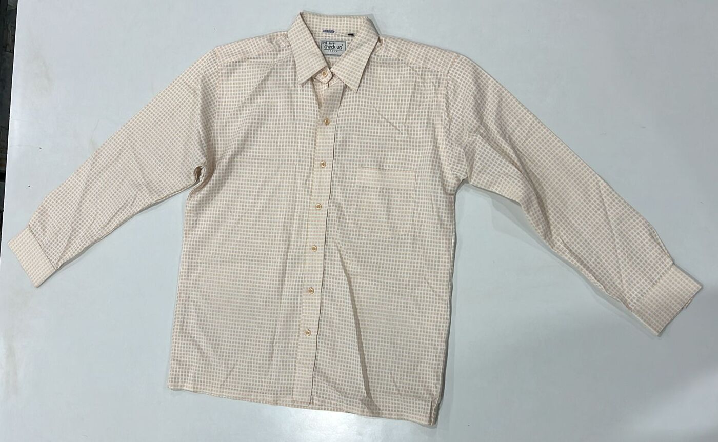 Comfortable cream shirt with fine mini-check pattern, perfect for everyday office or casual outings.