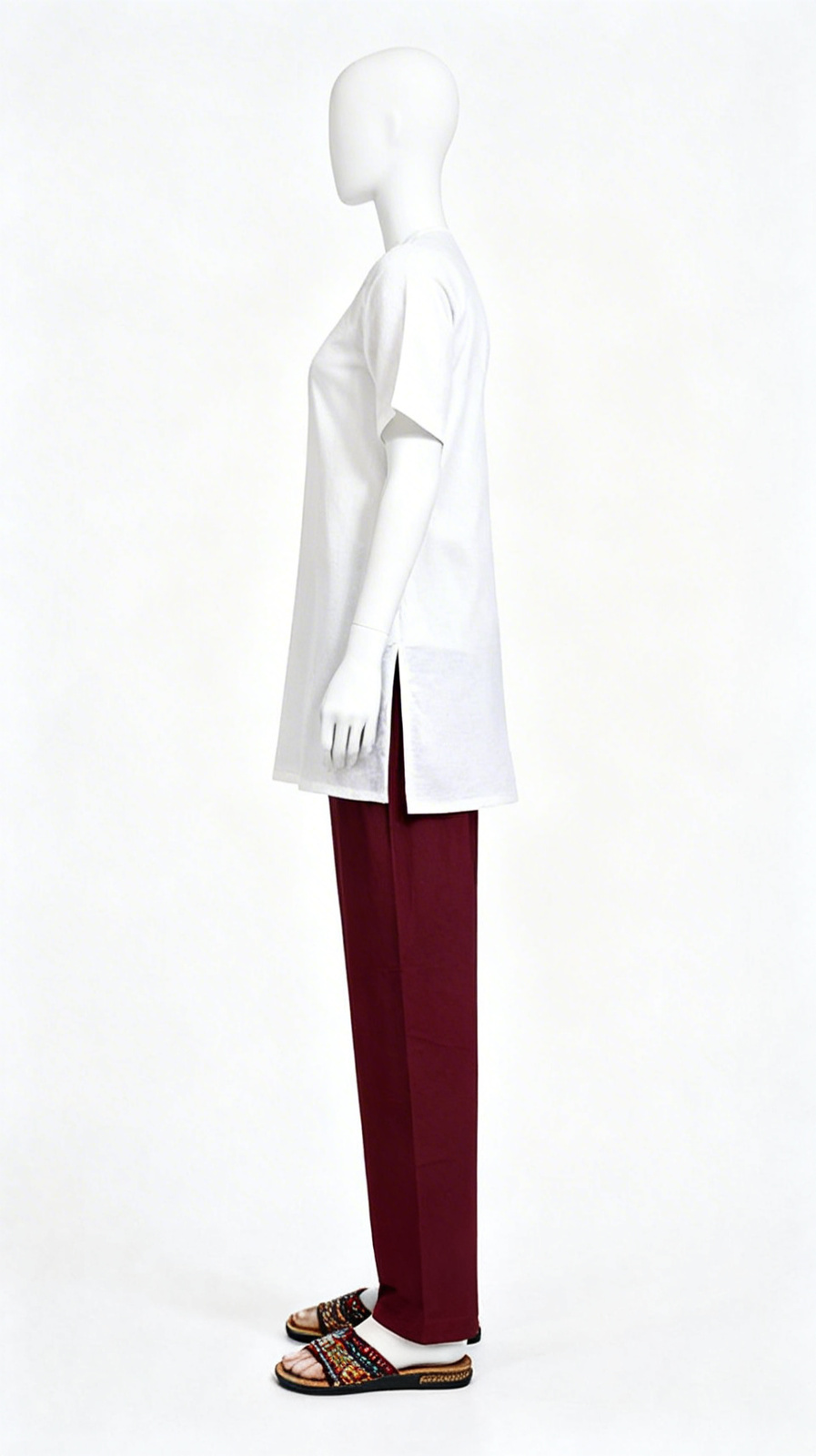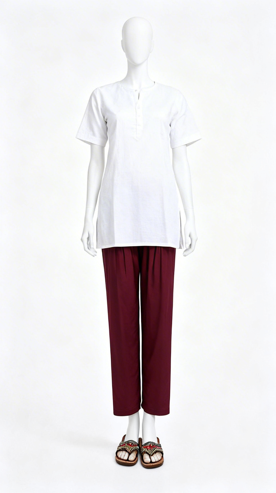 These maroon patiala-style pants feature pleated detailing and an adjustable drawstring waistband for a flexible and secure fit. Made from soft and breathable fabric for all-day comfort. Perfect to pair with kurtas, long tops, or festive wear. A versatile choice for ethnic, casual or daily styling.
