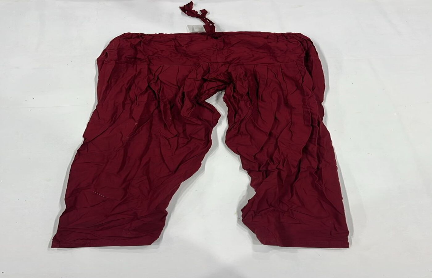 Comfortable maroon patiala-style pants with pleated design and drawstring waist. Soft breathable fabric, ideal for ethnic looks and daily wear.