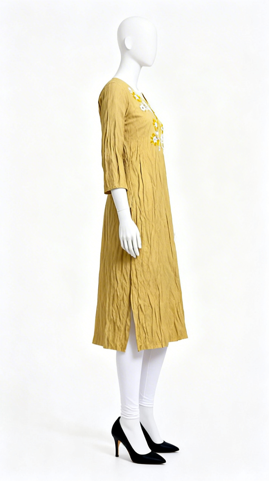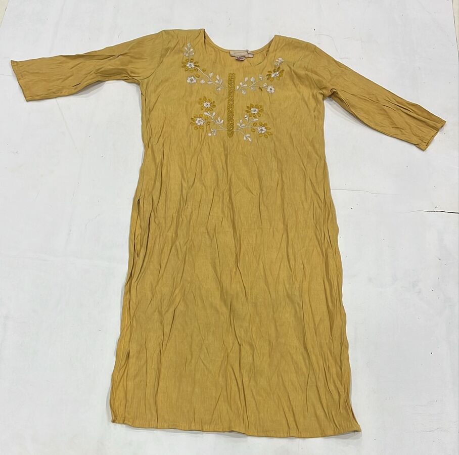 Designed with subtle embroidery, this kurti balances elegance and comfort. The straight cut and detailed yoke make it suitable for festive and ethnic occasions.